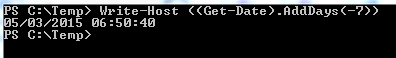Antes de mais nada, precisamos saber quantos dias para trás precisaremos definir para que cheguemos a última data de modificação que queremos. Para tanto, vamos utilizar o comando Write-Host ((Get-Date).AddDays(-XXX)) onde XXX é o número de dias que será diminuído a partir do dia atual. Por exemplo: digamos que hoje seja dia 12/03/2015 e que eu queira remover arquivos do dia 05/03/2015 para trás. Para isso, eu deveria colocar um 7 no lugar do XXX, ficando assim o meu código Write-Host ((Get-Date).AddDays(-5)).