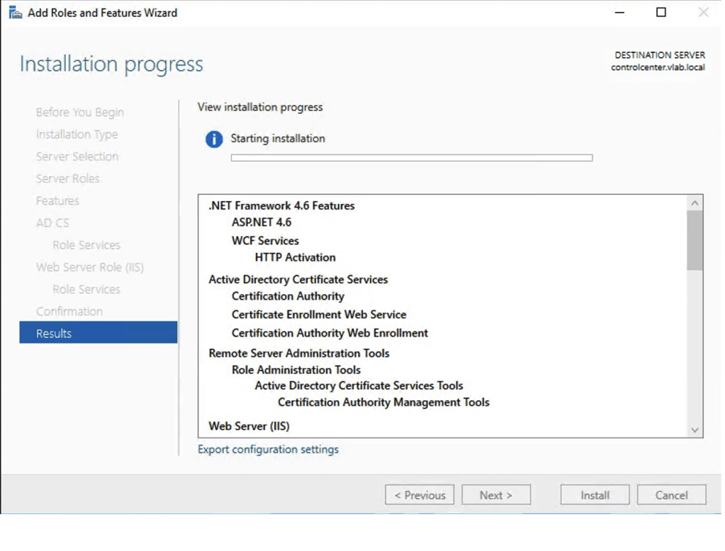 10. Aguarde o fim da instalação dos serviços e features selecionados.