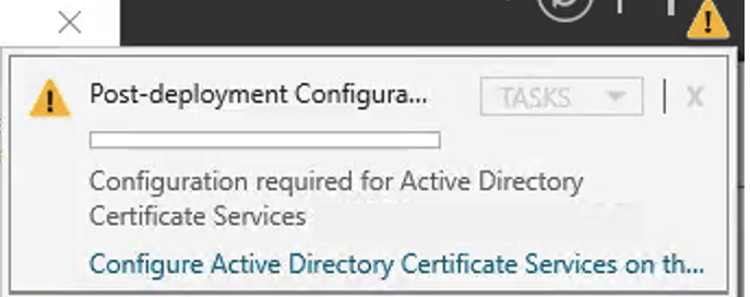 11. After features installation, we have to configure Microsoft AD CS. Click in Configure Active Directory Certificate Service on th…