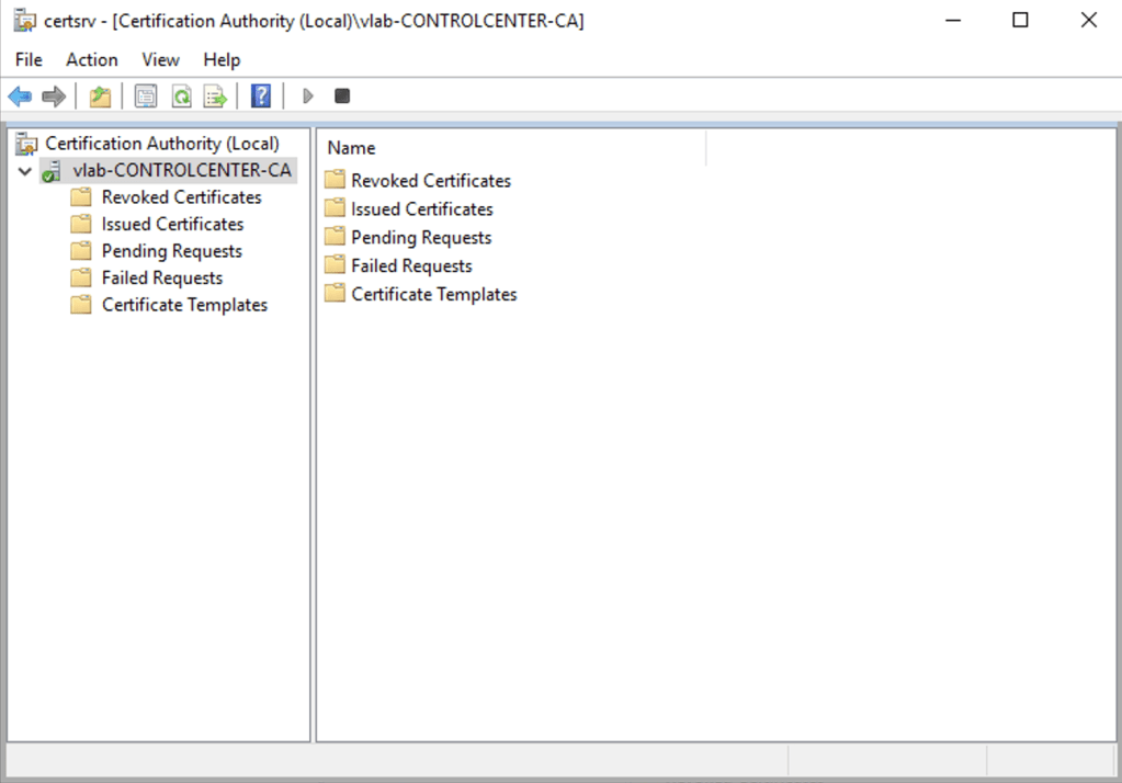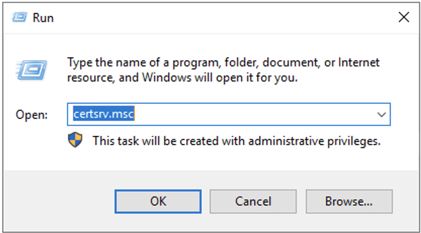 22. You can access the CA console to validate that everything is working as expected. open the Run menu type certsrv.msc.