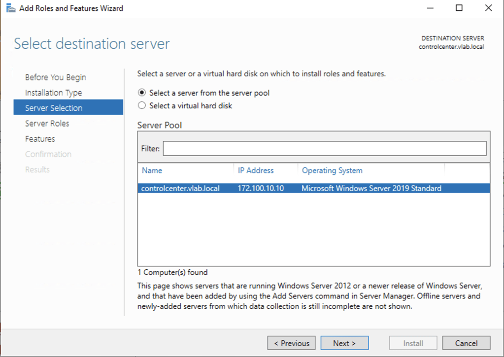 3. Select Select a server from the server pool option and then click Next.