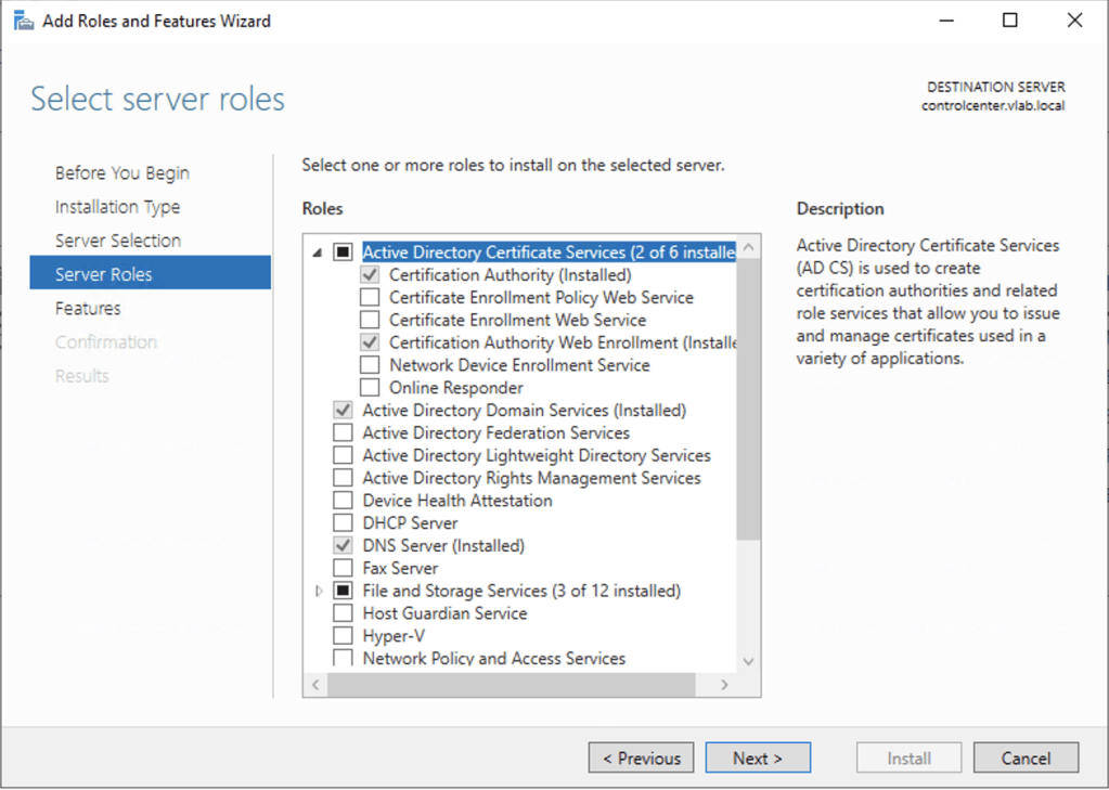 Nesta primeira parte, iremos criar uma CA baseada no Microsoft Windows. No lab estamos usando a versão 2019 no Windows Server, mas o conceito e serviços utilizados durante a instalação da feature de CA são bem parecidos com as demais versões desde o Windows Server 2012.