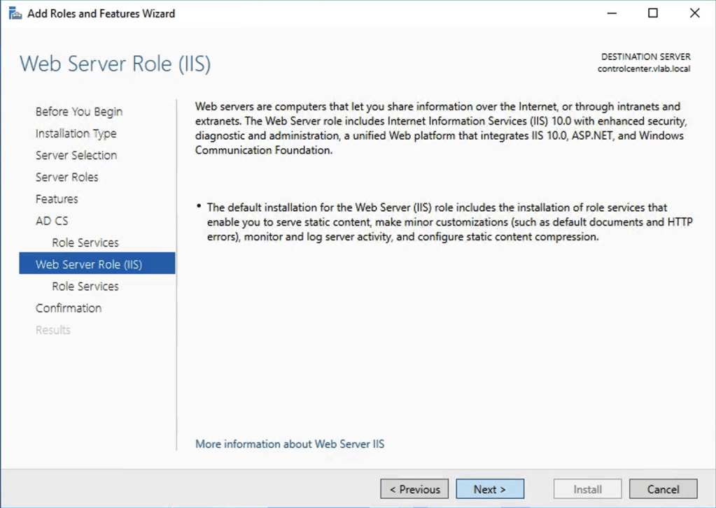 7. In Web Server Role (IIS) click Next.